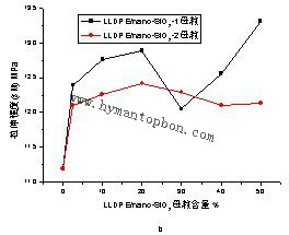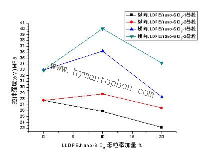 圖1 LLDPE/nano-SiO2母粒增強高壓聚乙烯的拉伸性能